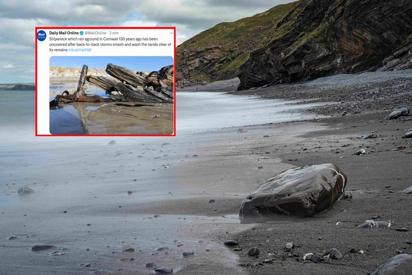 Wrak statku, który osiadł na mieliźnie w Kornwalii 130 lat temu, został odkryty po tym, jak sztormy sukcesywnie rozbijały i zmywały piasek z jego szczątków. Ukazujące się stopniowo szczątki to znany widok dla mieszkańców okolic, ale za każdym razem, gdy się odsłaniają na nowo wywołują debatę na temat tego skąd pochodzi wrak i do kogo należał. Pisze o tym dailymail.co.uk.