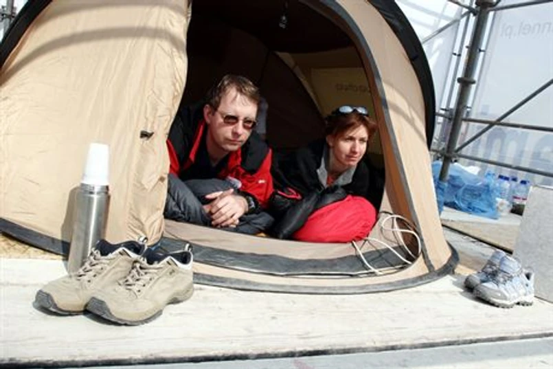 Obóz alpinistów w środku Warszawy