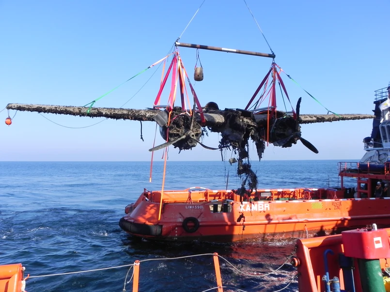 5 Wrak podniósł statek naukowo-badawczy "St. Barbara". Odtransportowano go na pokładzie holownika "Kambr" do portu w Gdyni. Operację realizowało Narodowe Muzeum Morskie wraz z Marynarką Wojenną i LOTOS Petrobaltic...