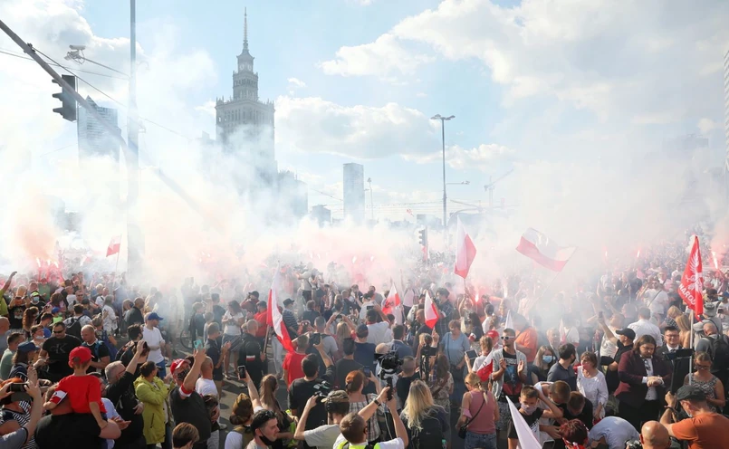 Zebrani na rondzie Dmowskiego mieli ze sobą biało-czerwone flagi, opaski z kotwicami Polski Walczącej. Niektórzy odpalili race. Odśpiewali również "Sen o Warszawie" Czesława Niemena.