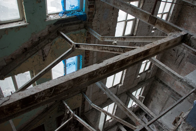 11 W miejscu podłóg zieje wielopiętrowa przepaść. Stalowe belki są jeszcze w dobrym stanie, co może dziwić, biorąc pod uwagę, jak intensywnie Prudential był ostrzeliwany w czasie wojny. Eksplozje dwutonowych pocisków wystrzeliwanych z 600-milimetrowego działa Karl odchyliły gmach od pionu aż o 2 metry... Źródło zdjęć: szaryburek.blox.pl Fotobloger Szary Burek na Facebooku