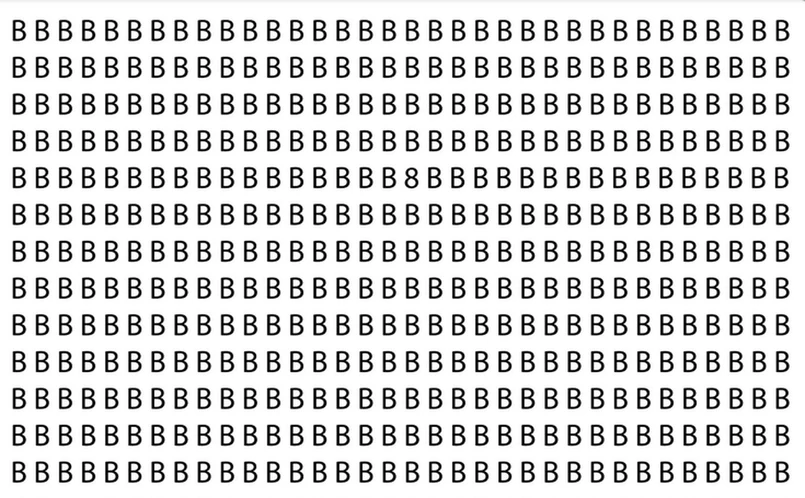 Nagromedzenie liter B może spowodować, że dostaniemy oczopląsu. Ale nie warto się zniechęcać. Dla ułatwienia podpowiemy, żeby przeszukiwać obraz po kolei rzędami lub kolumnami. Zachowajcie uwagę - w którymś momencie na pewno zauważycie ósemkę.