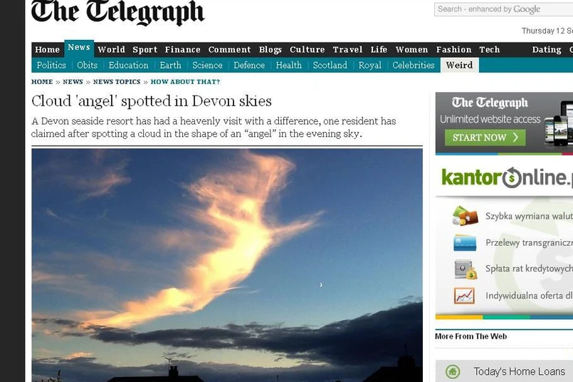 Wszystko wydarzyło się w hrabstwie Devon w Wielkiej Brytanii około godziny 19:30. - Pracowałem na poddaszu u ojca, po prostu wyjrzałem przez okno i wtedy zobaczyłem "anioła". Od razu złapałem aparat i zdążyłem zrobić kilka zdjęć, nim obłok rozpłynął się na niebie - cytuje słowa autora zdjęć "The Daily Telegraph".