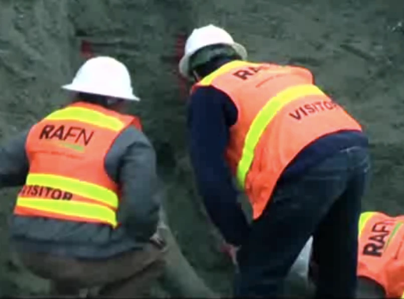 Badacze muszą delikatnie usunąć ziemię wokół kła, żeby go nie uszkodzić. Potem umieszczą go w specjalnym pojemniku, żeby dobrze go zabezpieczyć.