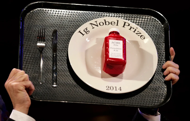 Absurdalne nagrody wręczono przy równie absurdalnej muzyce. Tarcie skórki od banana między butem a podłogą badali naukowcy z Japonii. Badacze z Kanady analizowali mózgi ludzi przejawiających pareidolię, czyli na przykład dostrzeganie twarzy Chrystusa w przypalonych tostach. Australijscy naukowcy doszli do wniosku, że ci ludzie, którzy późno chodzą spać, mają wysoką samoocenę, są manipulantami i przejawiają więcej cech psychopatycznych od tych, którzy wstają wcześnie rano. A włoski Urząd Statystyczny został uhonorowany za włączenie do narodowej gospodarki przychodów z prostytucji, handlu narkotykami i przemytu.