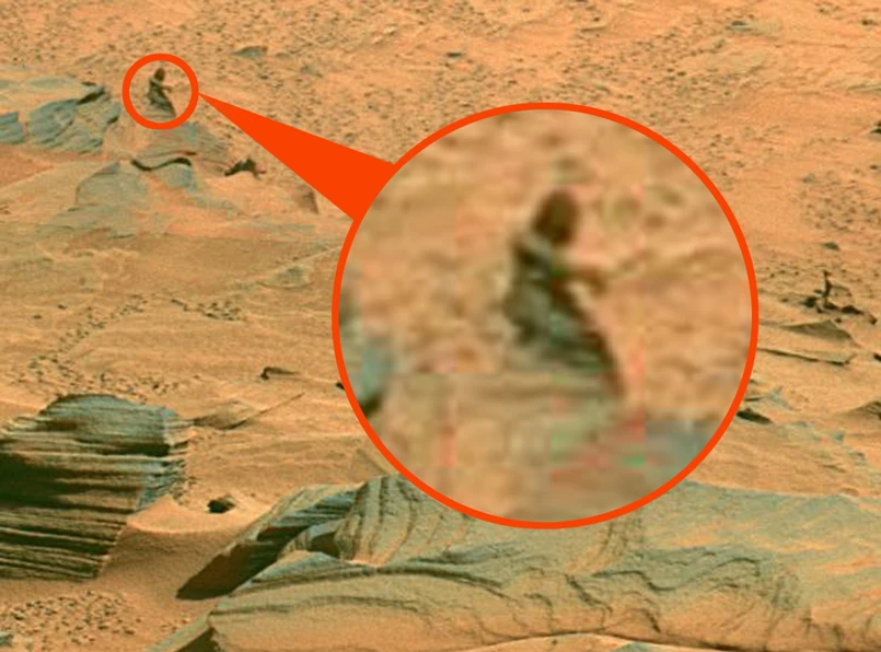 Na zdjęciach wyraźnie jednak widać kogoś spokojnie schodzącego z marsjańskiego wzgórza. Nie musi mieć ani specjalnego skafandra, ani butli z tlenem.