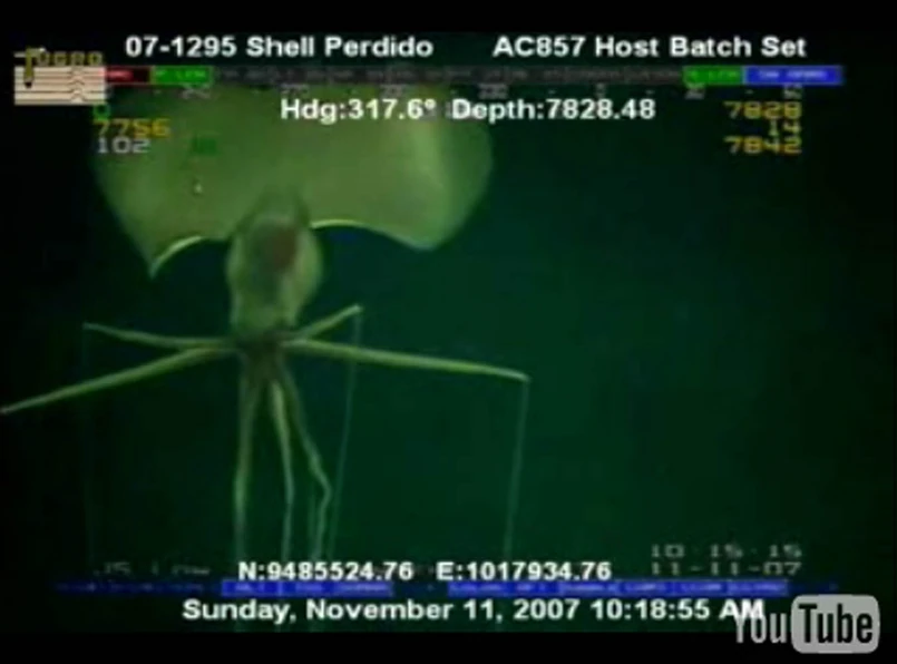 Początkowo pracownicy myśleli, że to kosmita, albo jakieś zwierzę całkowicie nieznane naukowcom. Dlatego zdjęcia z bezzałogowej łodzi podwodnej, która znalazła tajemniczego potwora przy platformie wiertniczej umieszczonej 320 kilometrów od wybrzeży Teksasu, krążyły przez rok między komputerami pracowników Shella. Każdy chciał zobaczyć, co znalazła łódź podwodna. A potem film wpadł w ręce naukowców.