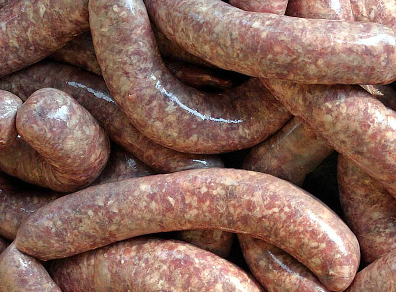 - 700 gramów mrożonych kiełbasek w cieście kosztuje 65 pensów. W każdej znajdziemy 6 procent wieprzowiny. Główny składnik tej wędliny to woda. Do tego mąka pszenna, olej roślinny, tłuszcz wieprzowy, sól i emulgatory;