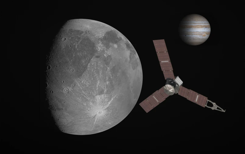 Do niezwykłego odkrycia doszło w trakcie przelotu sondy w pobliżu Ganimedesa w czerwcu 2021 roku. W tym czasie urządzenie analizowało obiekt za pomocą spektrometru służącego do badania chemii i interakcji w atmosferze Jowisza oraz jego księżyców. Ganimedes ma średnicę 5268 kilometrów, co oznacza, że jest większy od Merkurego. Okazuje się, że pod jego lodową skorupą znajduje się rozległy ocean.