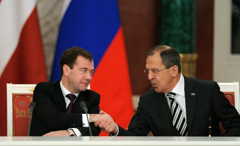Pierwszy dotyczy nie treści, lecz osób, które ją przekazały. Siergiej Ławrow jest ministrem spraw zagranicznych Rosji od roku 2004. Przez ten długi czas, wciąż z tak samo wielkim oddaniem służy Władimirowi Putinowi. Udowadniając, iż wykona każde jego polecenie, wykazując się przy tym sporą sprawnością intelektualną, a także absolutnym brakiem skrupułów. Równie oddanym sługą prezydenta Rosji jest Dmitrij Miedwiediew. To właśnie jego wybrał Putin, gdy postanowił przekazać na jedną kadencję urząd prezydenta Rosji innej osobie. Tak stwarzając pozory przestrzegania konstytucji oraz demokratycznych reguł. Ryzyko było niemałe, bo mniej lojalny polityk w takiej sytuacji mógł próbować wyrwać się spod kontroli "dobroczyńcy" i przejąć rzeczywistą władzę. Miedwiediew trwał w ślepym posłuszeństwie, za co był potem wielokrotnie nagradzany.