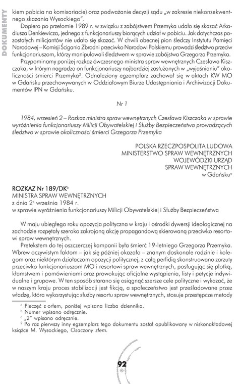 1997 r. Sąd Wojewódzki w Warszawie skazał już Kazimierza O. na półtora roku więzienia w zawieszeniu za próbę zniszczenia w 1989 r. akt sprawy Grzegorza Przemyka. Jednak oficer złożył apelację i został uniewinniony.
