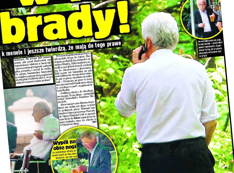 "Tempo, w jakim posłowie osuszali kolejne szklanki, było szokujące. Ale potem było jeszcze gorzej, gdy poseł Huskowski, nie wypuszczając telefonu z lewej ręki - prawą rozsunął rozporek, załatwił pilną potrzebę i wrócił do stolika. Co gorsza, bezwstydny biesiadnik tą wątpliwą sprawnością popisywał się tuż przy ruchliwej ulicy" - opisuje tabloid.