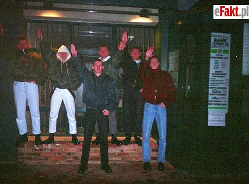 eFakt publikuje dziś zdjęcia, które "dokumentują niezdrowe fascynacje młodego Farfała". Na jednym z nich widać grupkę krótko ostrzyżonych mężczyzn unoszących dłonie w nazistowskim pozdrowieniu. "Wśród nich on - blisko osiemnastoletni Piotr Farfał - dumnie salutujący w faszystowskim geście" - pisze eFakt.