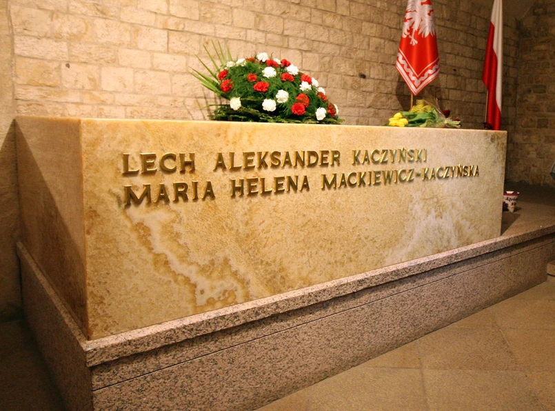 Proboszcz Katedry na Wawelu ks. prałat Zdzisław Sochacki odprawił mszę świętą w krypcie św. Leonarda. Jarosław Kaczyński na grobie brata i bratowej złożył wieniec z biało-czerwonych goździków. Córka - kosz czerwonych róż.