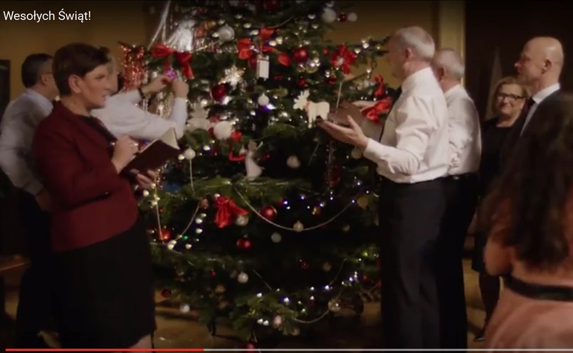 W świątecznym klipie wszyscy ministrowie rządu Beaty Szydło dokładają swoja cegiełkę do wspólnie ubieranej choinki.