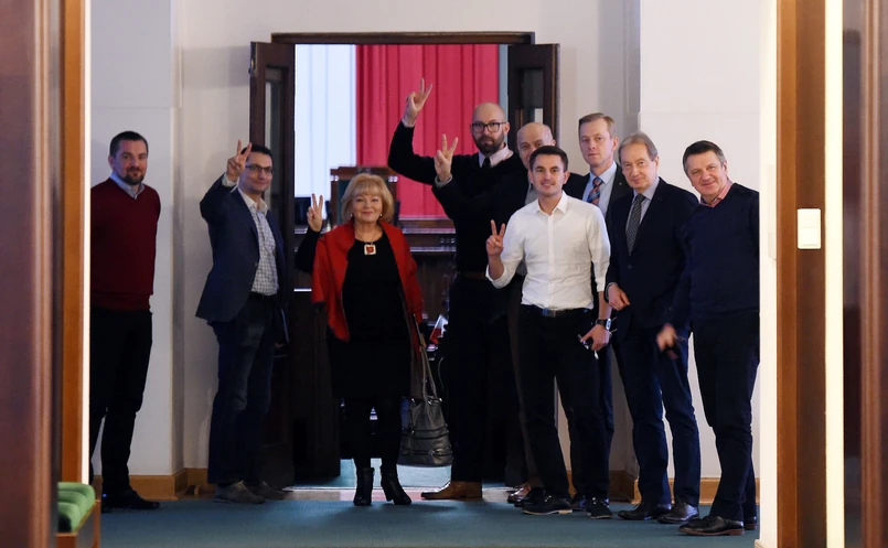 Podczas piątkowego posiedzenia Sejmu posłowie opozycji, w reakcji na planowane zmiany w zasadach pracy dziennikarzy w parlamencie oraz na wykluczenie z obrad posła PO Michała Szczerby, zablokowali sejmową mównicę. Obrady zostały wznowione przez marszałka Sejmu Marka Kuchcińskiego w Sali Kolumnowej, gdzie przeprowadzono głosowania nad ustawą budżetową na 2017 r. oraz tzw. ustawą dezubekizacyjną.