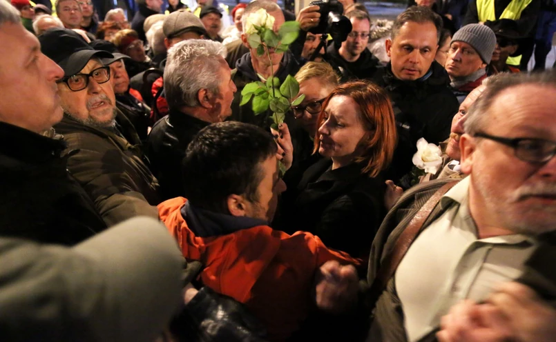 Grupa obywateli - jak relacjonował Huskowski - z różnych stowarzyszeń, m.in. Obywateli RP, próbowała zademonstrować niezgodę na łamanie prawa i zakazywanie im takich demonstracji. Jak dodał, wzięli oni ze sobą białe róże, które - jak mówił Huskowski - są według prezesa PiS Jarosława Kaczyńskiego symbolem nienawiści i głupoty. Huskowski, a także inni posłowie opozycji mieli na sali sejmowej białe róże.