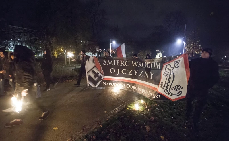 Błaszczak powiedział również, że polskie państwo nie akceptuje haseł antysemickich i rasistowskich, choć, jak podkreślił, "to był margines marginesów". 11 listopada pod hasłem "My chcemy Boga" ulicami Warszawy w Marszu Niepodległości przeszło - jak szacuje policja - ok. 60 tys. osób. Jego uczestnicy, oprócz polskich flag, biało-czerwonych opasek z kotwicą Polski Walczącej, trzymali także transparenty, na których widniały np. hasła: "Wszyscy różni, wszyscy biali" czy "Europa tylko dla białych".