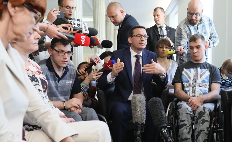 Nasze założenie jest takie żeby dotyczyło to jak najszerszych grup osób niepełnosprawnych; są różne osoby z różnymi niepełnosprawnymi na pewno bardzo dokładnie przyjrzymy się tej sytuacji - zapowiedział Morawiecki przed spotkaniem.