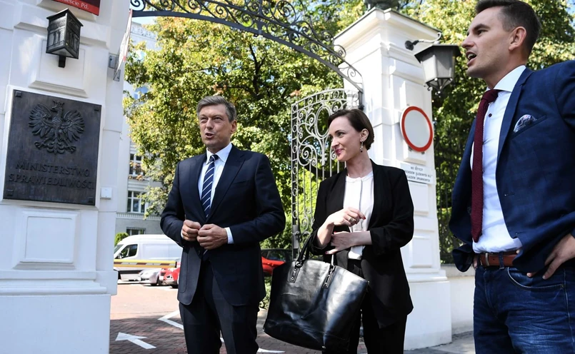 Posłowie PO-KO: Mariusz Witczak, Joanna Augustynowska i Arkadiusz Myrcha - w ramach kontroli poselskiej w Ministerstwie Sprawiedliwości - spotkali się z wiceszefem resortu Michałem Wójcikiem.