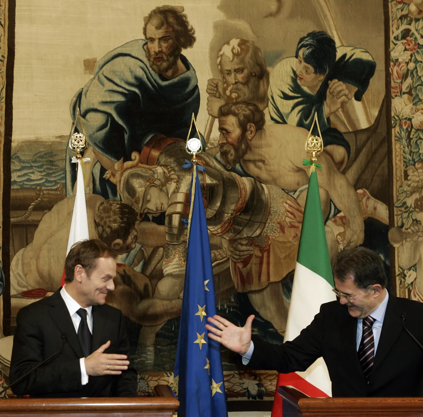 Obaj rozmawiali około 20 minut. Benedykt XVI dostał w prezencie od polskiego premiera pochodzącego znad morza model żaglowca. Cały ze srebra. Papież, dziękując za prezent, nawiązał do Gdańska. Przypomniał, że to właśnie tam narodziła się "Solidarność".