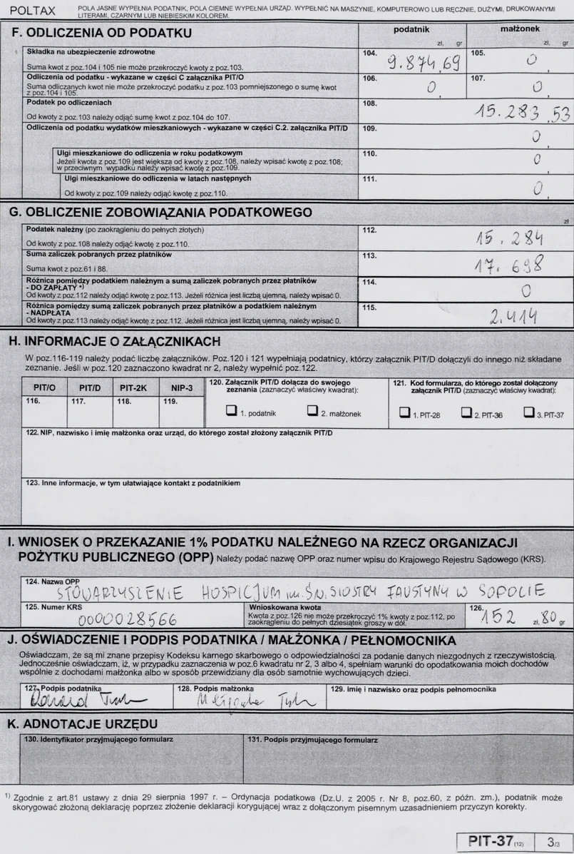 Premier przekazał 1 procent dochodu na organizację pożytku publicznego. 152 złote trafi na rzecz hospicjum w Sopocie. Zaapelował też do podatników o przekazywanie 1 procenta na rzecz innych organizacji. Przypomniał, że warunkiem przekazania pieniędzy jest rozliczenie się w terminie.