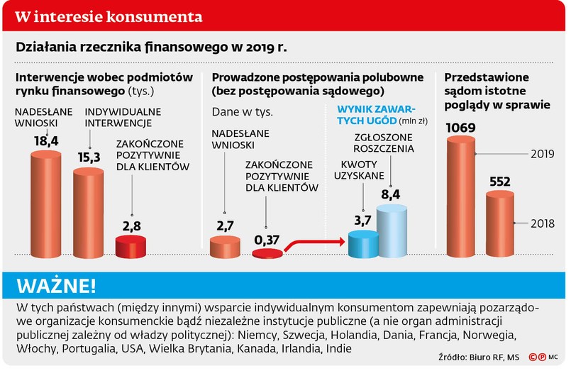 Przypomnijmy: chodzi o projekt ustawy o rozpatrywaniu reklamacji i sporów klientów podmiotów rynku finansowego oraz o Funduszu Edukacji Finansowej, który jest właśnie konsultowany. Projektodawca - Ministerstwo Finansów - uważa, że obecny rozproszony model ochrony konsumenckiej jest niewystarczający. I z tego punktu widzenia znacznie lepiej będzie, gdy będzie funkcjonował jeden silny organ zajmujący się ochroną zarówno zbiorowych interesów, jak i pomagał w indywidualnych sprawach.