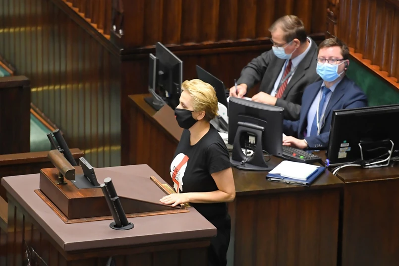 Panie Szymonie Hołownio, jak można być takim kłamcą i tak cynicznie wykorzystywać Strajk Kobiet, Martę Lempart (jedną z liderek ruchu) i rzesze kobiet? Pan nigdy nie był z nami. Ma pan jasny pogląd-aborcję uważa ze zabójstwo. Serio, na plecach kobiet chce pan robić politykę? Straszne - napisała posłanka w czwartek na Twitterze.
