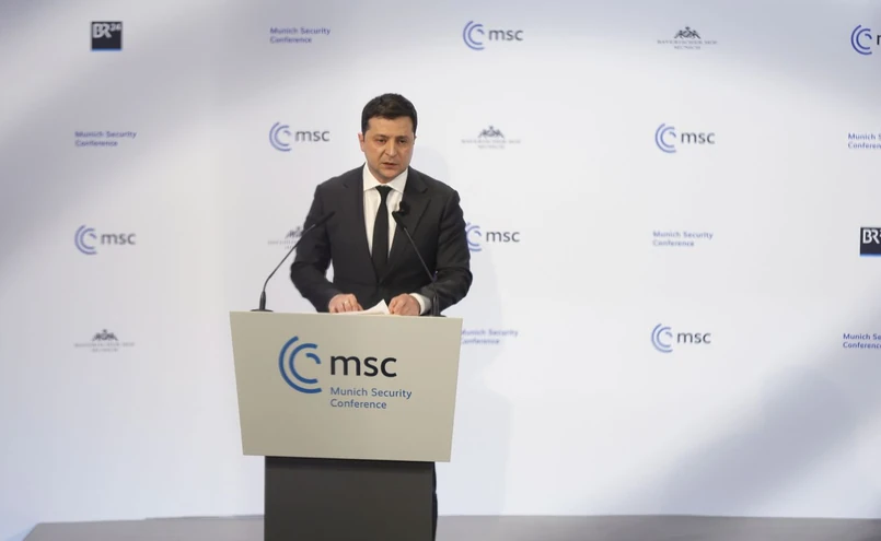 Zełenski uczestniczy w Monachijskiej Konferencji Bezpieczeństwa, która poświęcona jest sprawom bezpieczeństwa międzynarodowego. Obecni na niej są szefowie państw i rządów, ministrowie spraw zagranicznych oraz obrony, w Monachium są też przedstawiciele świata nauki. Dominującym tematem dyskusji jest sytuacja na Ukrainie, której grozi inwazja ze strony Rosji. Władimir Putin, rosyjski prezydent, nie przybył na konferencję.