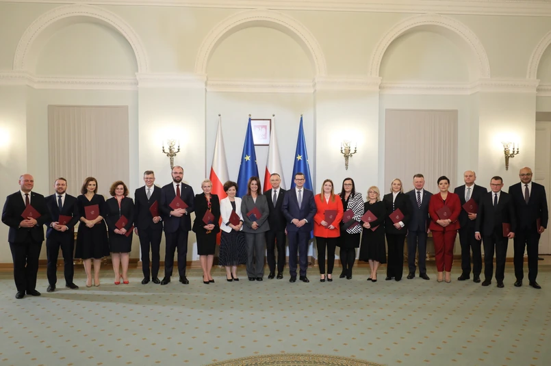 Andrzej Duda podał skład nowego rządu Mateusza Morawieckiego. Od tego momentu premier będzie miał dwa tygodnie, by uzyskać wotum zaufania. W nowym rządzie znaleźli się m.in.: Andrzej Kosztowniak (Ministerstwo Finansów), Mariusz Błaszczak (MON), Dominika Chorosińska (MKiDN), Marcin Warchoł (Ministerstwo Sprawiedliwości) oraz Szymon Szynkowski vel Sęk (MSZ).