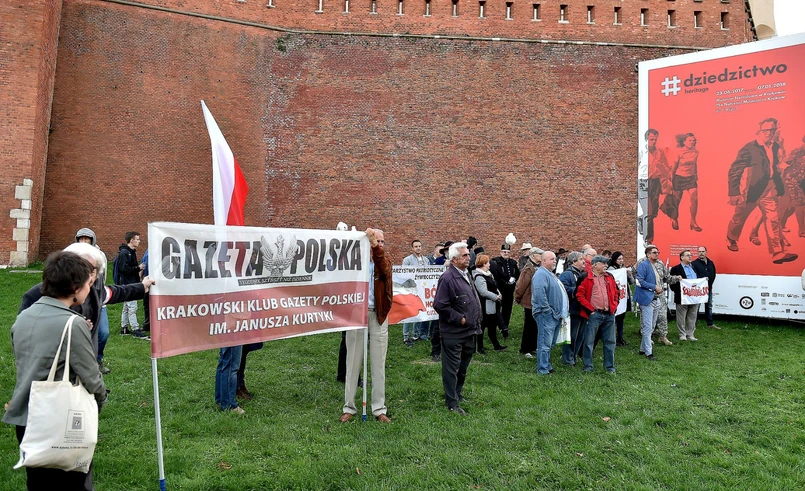 1 "Wawel polski nie PiS-owski", "Wielka Polska kolorowa", "Misiewicze" - skandowali protestujący "przeciwko upartyjnianiu Wawelu". "Bolszewicy", "Wielka Polska katolicka", "Zdrajcy" – odpowiadali zwolennicy PiS m.in. z krakowskiego klubu Gazety Polskiej.