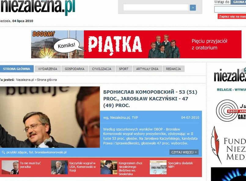 Nazwisko Bronisława Komorowskiego w tytule informacji o pierwszym komunikacie Państwowej Komisji Wyborczej niezależna.pl napisała cyrylicą. W tekście nie było ani słowa wyjaśnienia, dlaczego.