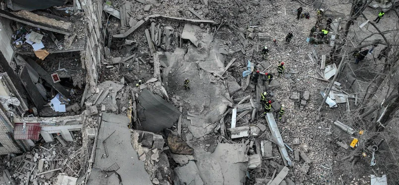 Dwie rakiety wystrzelono dziś z terytorium Krymu. Z publikowanych w sieci Telegram zdjęć wynika, że trzypiętrowy budynek w centrum Kijowa został całkowicie zniszczony. Tymczasem oficjalnie władze Ukrainy informują o zestrzeleniu obu rakiet.