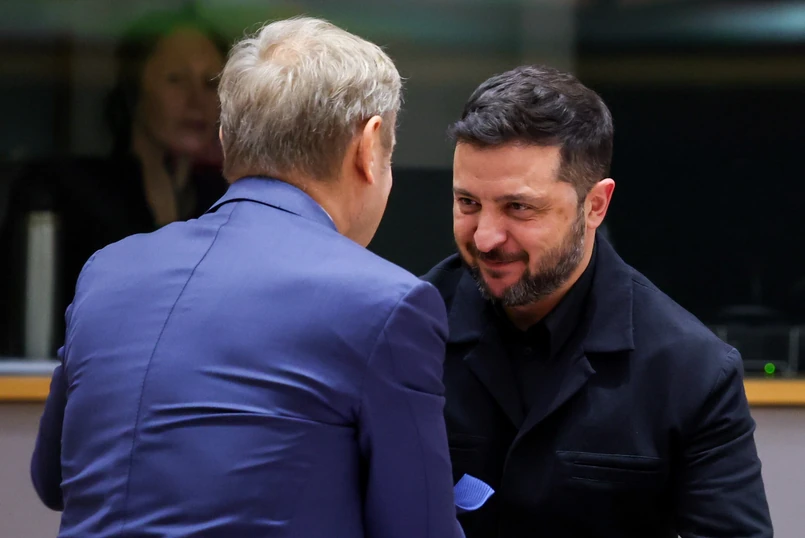 Zełenski spotkał się w czwartek z obradującymi w Brukseli szefami państw i rządów UE. Następnie rozmawiał w cztery oczy z premierem Tuskiem. Zdjęcie ze spotkania obu polityków zamieściła kancelaria premiera na platformie X.