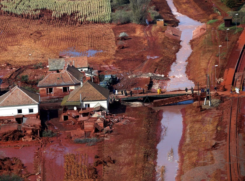 4 października przerwany został wał zbiornika osadowego huty w Ajka na zachodzie Węgier, co spowodowało wyciek ponad miliona metrów sześciennych czerwonego szlamu, powstającego przy oczyszczaniu boksytu ze związków żelaza metodą ługowania. Szlam składa się głównie z nadających mu czerwoną barwę tlenków żelaza i ma właściwości żrące ze względu na pozostałości rozpuszczonego wodorotlenku sodu. Wyciek spustoszył trzy wioski i zanieczyścił okoliczne rzeki, w tym wpływającą do Dunaju Rabę.