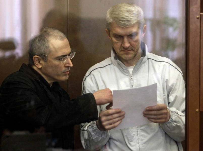 W maju 2005 roku Chodorkowski i Lebiediew zostali skazani na kary po dziewięć lat pozbawienia wolności za przestępstwa gospodarcze: defraudację i uchylanie się od płacenia podatków. We wrześniu 2005 roku sąd złagodził im wyroki do ośmiu lat kolonii karnej. Obaj od początku odrzucali wysunięte wobec nich oskarżenia, uważając je za sfabrykowane i politycznie umotywowane.