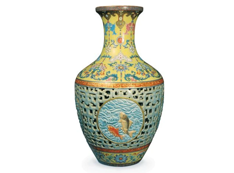 Waza prawdopodobnie przez wiele lat stała w królewskim pałacu w Pekinie. Jest to konstrukcja podwójna - w pierwszej, perforowanej obudowie, kryje się druga - lita. "To kawał przepięknej roboty i niezwykły przykład umiejętności ceramicznych oraz dekoratorskich" - ocenia dom aukcyjny. - "To arcydzieło sztuki. Gdyby tylko potrafiło mówić..."