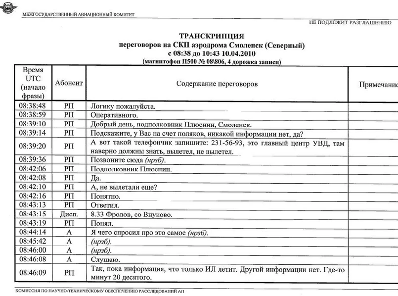 Zapisy poprzedza oświadczenie przewodniczącego komisji technicznej MAK (Międzypaństwowego Komitetu Lotniczego), w którym podano, że zapisy są publikowane w związku z doniesieniami w mediach, które powołują się na ministra spraw wewnętrznych i administracji Polski Jerzego Millera, a dotyczą opublikowania przez stronę polską zapisów rozmów kontrolerów lotów.
