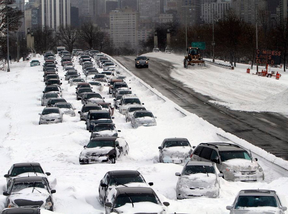 Podczas najbardziej intensywnych opadów prawie tysiąc samochodów utknęło na drodze szybkiego ruchu Lake Shore Drive położonej nad jeziorem Michigan. Podmuchy silnego wiatru sprawiły, że na drodze tworzyły się prawie dwumetrowe zaspy.