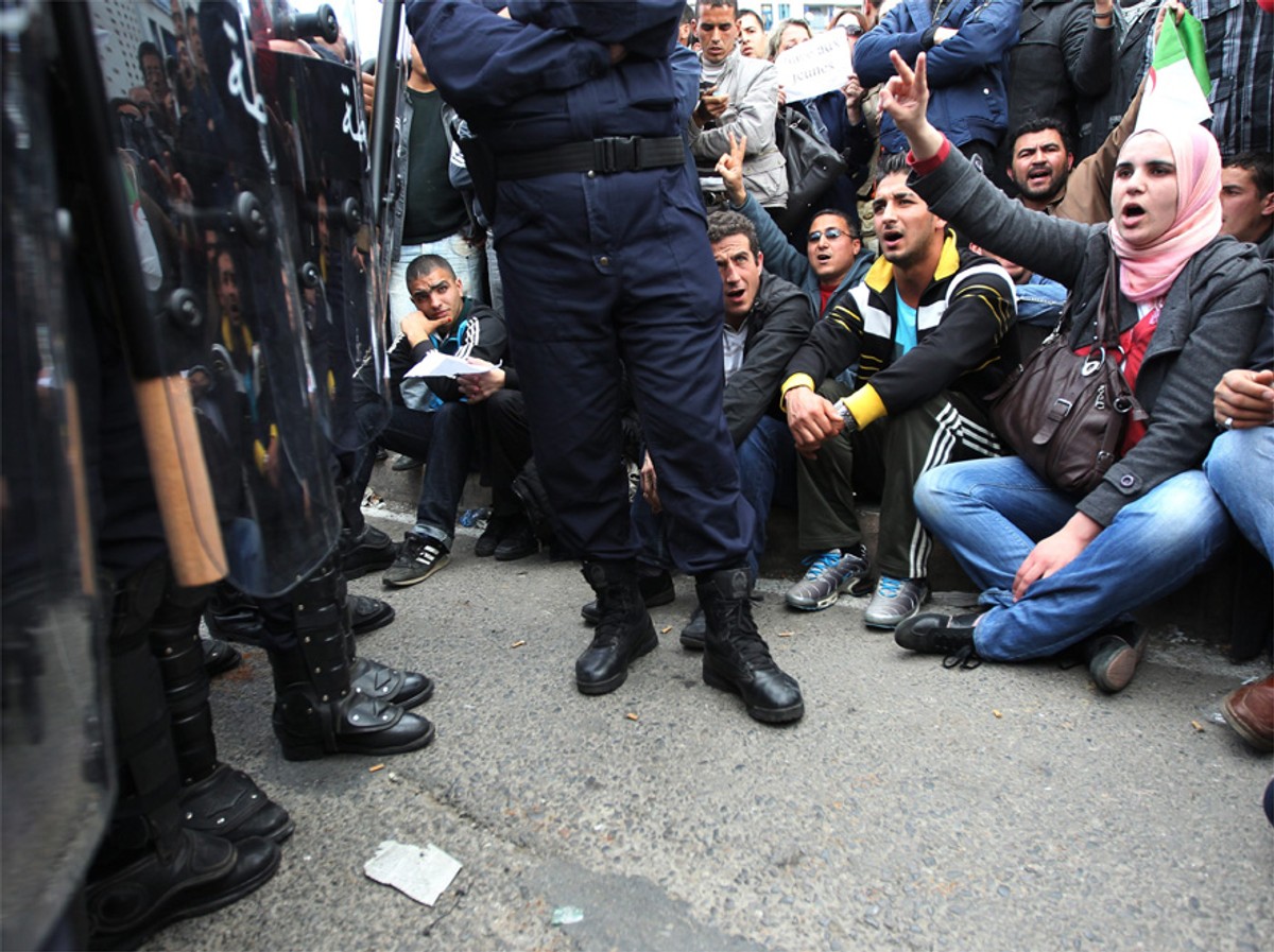 Niewielkie grupy opozycjonistów zdołały zebrać się na stołecznym Placu 1 Maja, wznosząc okrzyki "Buteflika precz!" pod adresem rządzącego od 1999 roku prezydenta Abdelaziza Butefliki. Wymachiwali też gazetami, informującymi o piątkowej rezygnacji prezydenta Egiptu Hosniego Mubaraka.