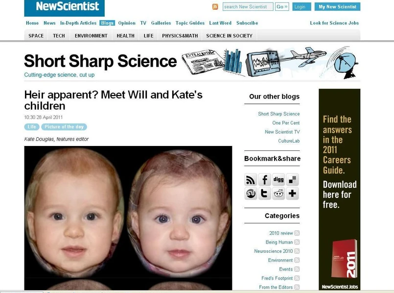 W przeddzień wielkiego książęcego ślubu symulacje twarzy dzieci księcia Williama i Kate opublikowano na łamach „New Scientist”. Zostały one stworzone zgodnie z zasadami odkrytymi w Laboratorium Percepcji Davida Perretta dzięki analizie setek twarzy.