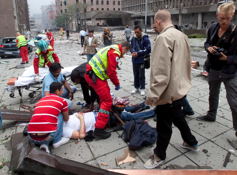 Ewakuowano sąsiednie budynki, w których mieszczą się m.in. redakcje największych norweskich dzienników. W rejonie eksplozji pojawiła się żandarmeria wojskowa. Nad miastem unoszą się kłęby dymu. "Mogę jedynie powiedzieć, że premier jest bezpieczny" - powiedział "VG" doradca norweskiego premiera Jensa Stoltenberga, Sindre Fossum Beyer. Jak poinformował przedstawiciel norweskiego rządu, Hans Kristian Amundsen, w miejscu wybuchu nadal uwięzieni są ludzie.
