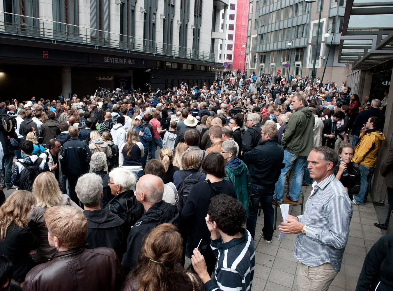 Na dziedziniec uniwersytetu w Oslo przybyli ubrani na czarno król Harald V, królowa Sonja i premier Jens Stoltenberg wraz z członkami rządu.