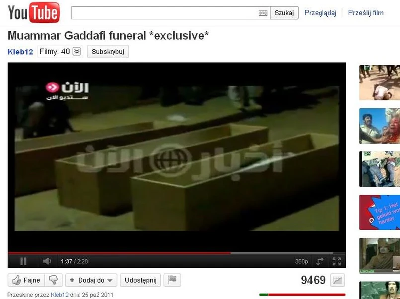 Zdjęcia z pochówku Kadafiego, jego syna Mutasima, a także dowódcy libijskiej armii pokazała dubajska telewizja Al-Alaan.