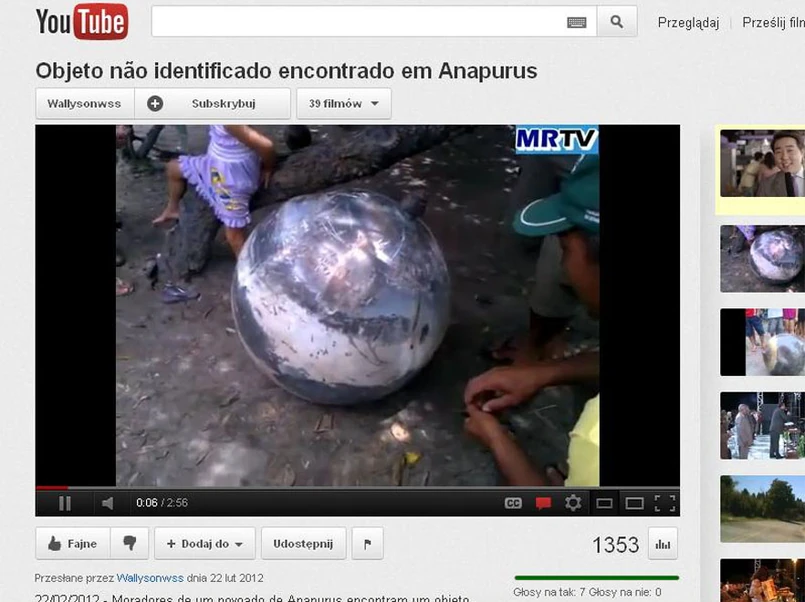 Oczom ludzi okazała się metaliczna kula. Okazało się, że jest w niej jeden otwór, a obiekt wydaje się być czymś wypełniony - gdy się go przestawi, czuć, że zawartość się "przemieszcza".