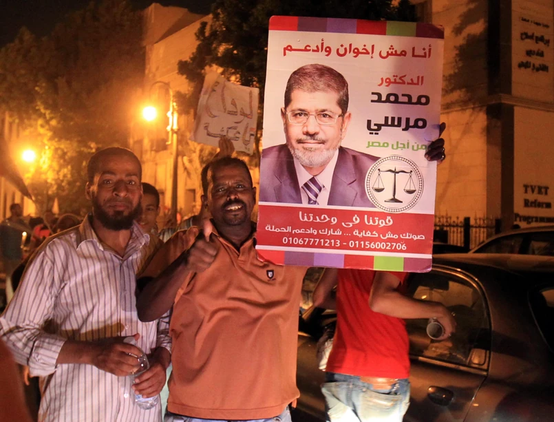 Umiarkowany islamista Mursi zdobył w drugiej i decydującej turze wyborów prezydenckich 51,73 proc. głosów, pokonując Ahmeda Szafika, byłego dowódcę sił powietrznych Egiptu i ostatniego premiera reżimu obalonego w lutym zeszłego roku Hosniego Mubaraka.