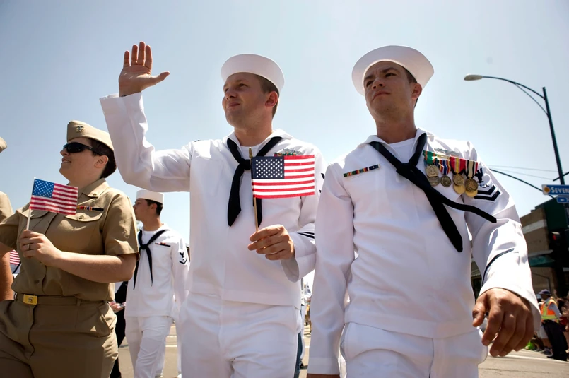 Przyglądający się paradzie ludzie trzymali transparent z hasłem: Dziękujemy za waszą służbę. Jedna z kobiet wymachiwała plakatem, na którym widniał napis: "Mój syn-gej jest oficerem marynarki wojennej".