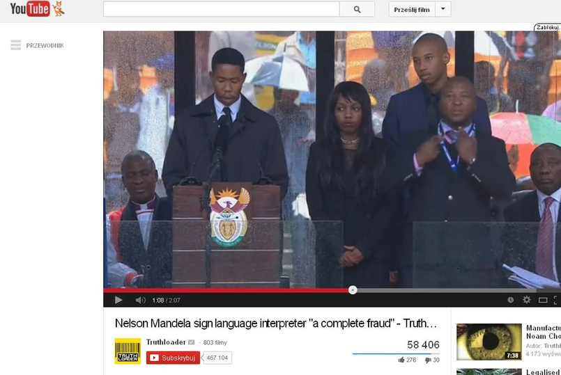''Tłumacz'' był na scenie m.in. podczas przemówienia Baracka Obamy, które transmitowały światowe telewizje. Początkowo nie było wiadomo czy mężczyzna udaje, że zna język migowy, czy po prostu używa innej metody komunikacji.