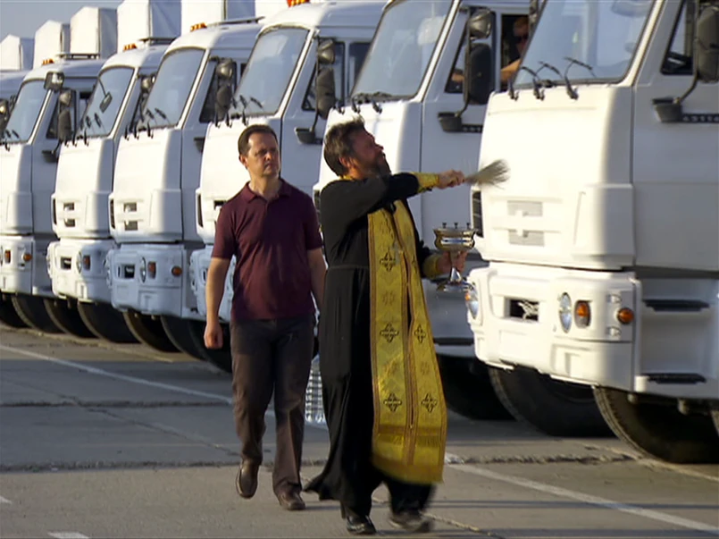 W rosyjskiej miejscowości Donieck, obok granicy z Ukrainą wciąż zaparkowanych jest kilkaset TIR-ów z rosyjską pomocą. Zgodnie z rosyjsko-ukraińskimi uzgodnieniami, pomoc powinna była być sprawdzona przez ukraińskie służby, a następnie pod egidą Czerwonego Krzyża powinna wjechać na terytorium zajmowane przez separatystów. Konwój trafić ma do zajętego przez prorosyjskie bojówki Ługańska.