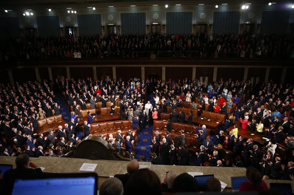 Panie Marszałku. Papież ze Stolicy Apostolskiej - te słowa padły po raz pierwszy w historii Kongresu. Papież podziękował za zaproszenie do parlamentu Stanów Zjednoczonych, które, jak w amerykańskim hymnie, określił mianem kraju wolnych, ojczyzny dzielnych ludzi. W swoim wystąpieniu papież apelował humanitarne i braterskie traktowanie imigrantów. My, ludzie tego kontynentu nie boimy się obcokrajowców ponieważ większość z nas kiedyś była kiedy cudzoziemcami - podkreślił papież.